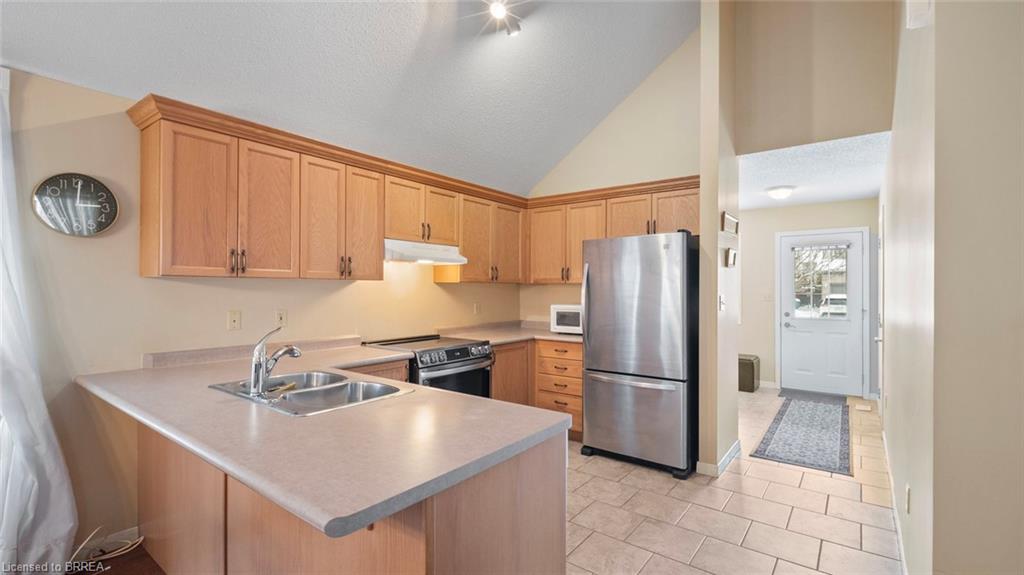 The open concept main floor features soaring cathedral ceilings and an airy, light filled layout that flows seamlessly throughout. The large kitchen offers an abundance of cabinetry and workspace, making it ideal for everyday living as well as entertaining. The upper loft level provides a private retreat, complete with an additional bedroom and a three piece bathroom.
